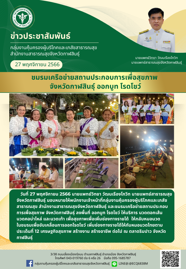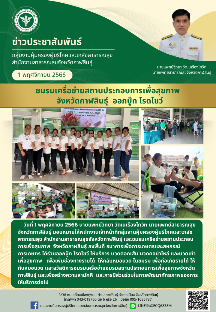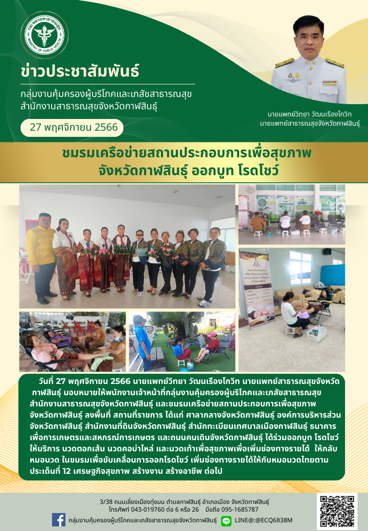 ชมรมเครือข่ายสถานประกอบการเพื่อสุขภาพจังหวัดกาฬสินธุ์ ออกบู๊ท โรดโชว์