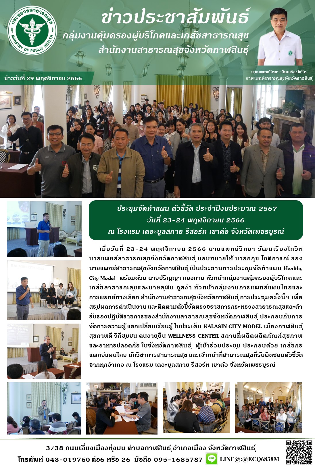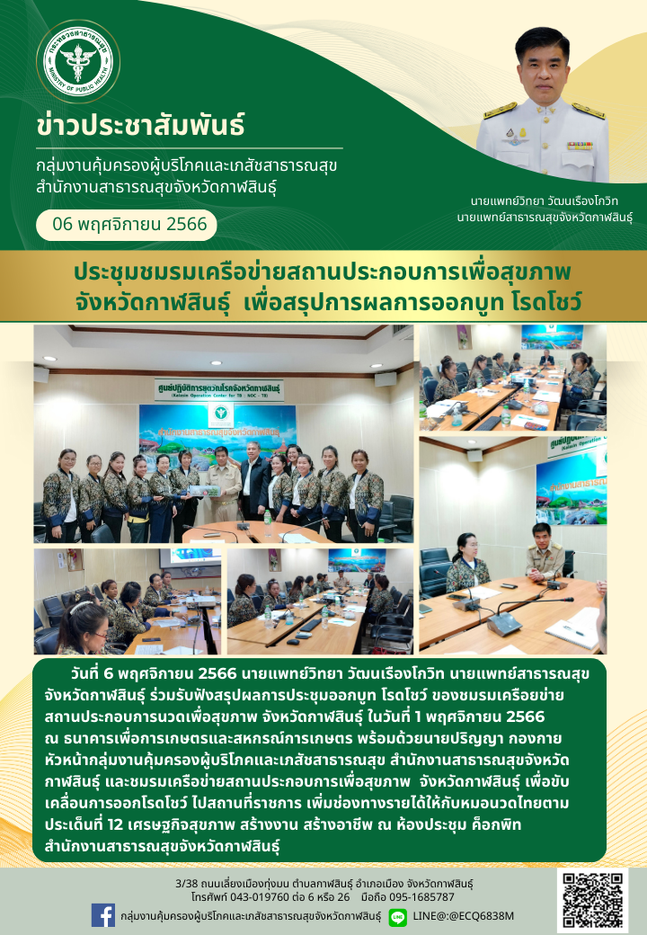 ประชุมชมรมเครือข่ายสถานประกอบการเพื่อสุขภาพจังหวัดกาฬสินธุ์ เพื่อสรุปผลการออกบูท โรดโชว์