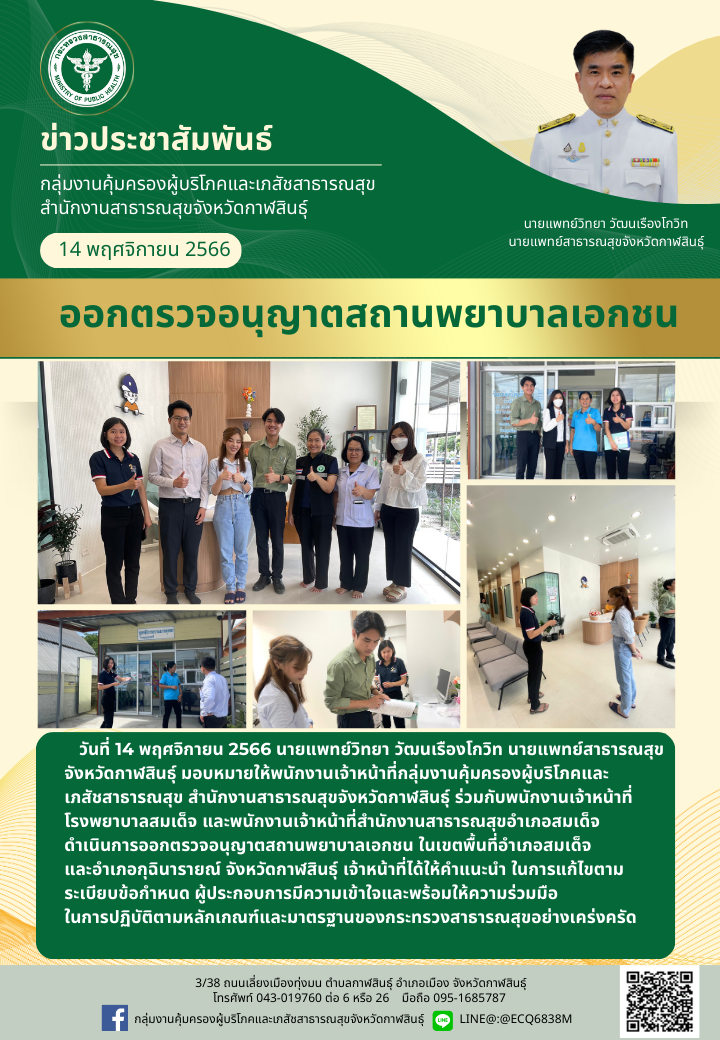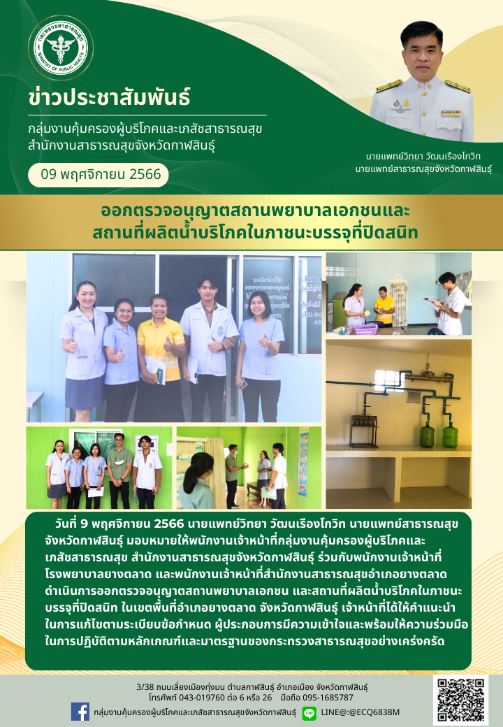 กลุ่มงานคุ้มครองผู้บริโภคฯ สสจ.กาฬสินธุ์