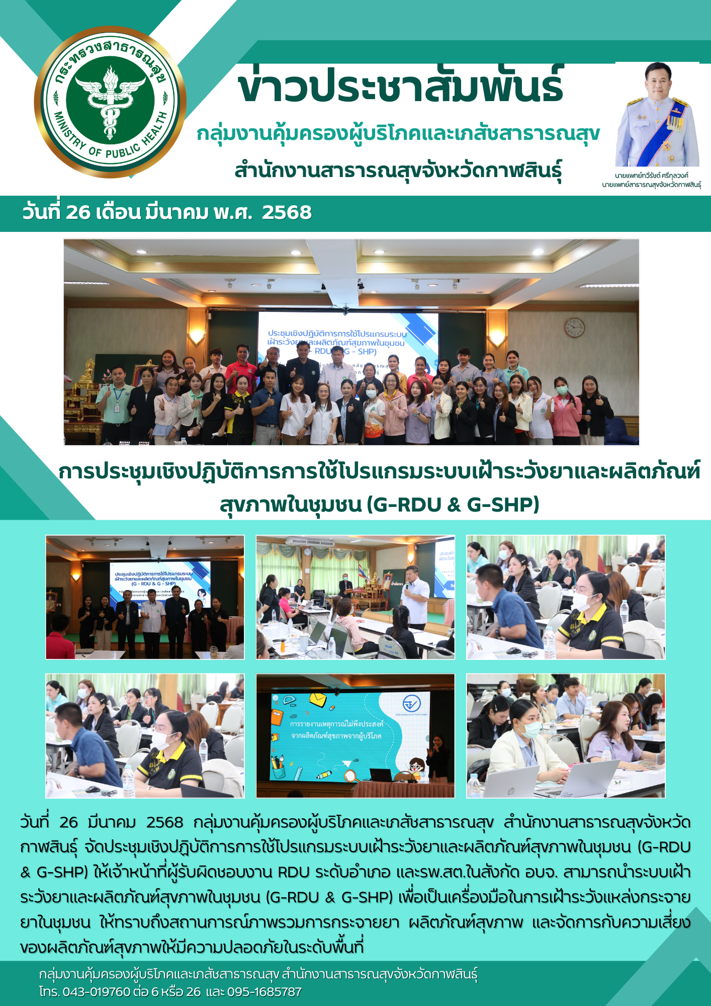 26มี.ค., 2025 การประชุมเชิงปฏิบัติการการใช้โปรแกรมระบบเฝ้าระวังยาและผลิตภัณฑ์สุขภาพในชุมชน (G-RDU & G-SHP)