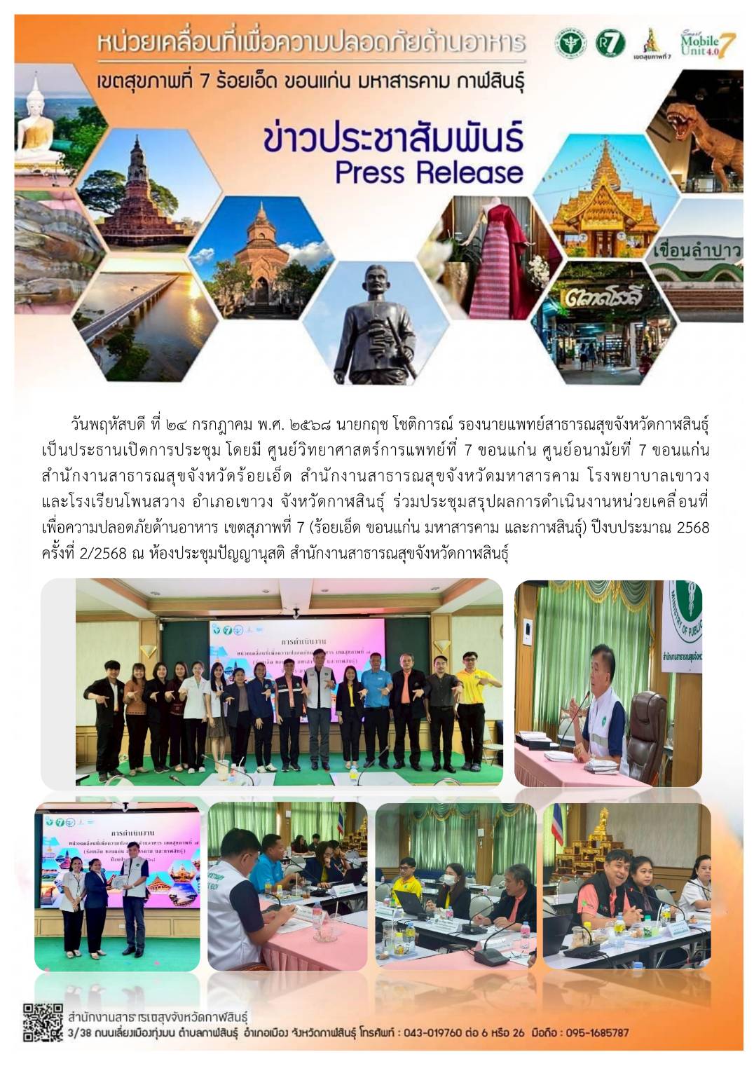 24ก.ค., 2025 ประชุมสรุปผลการดำเนินงานหน่วยเคลื่อนที่เพื่อความปลอดภัยด้านอาหาร เขตสุขภาพที่ 7 ครั้งที่ 2/2568