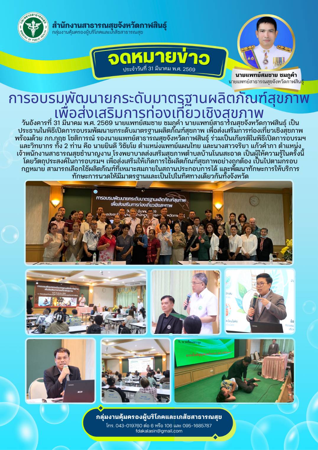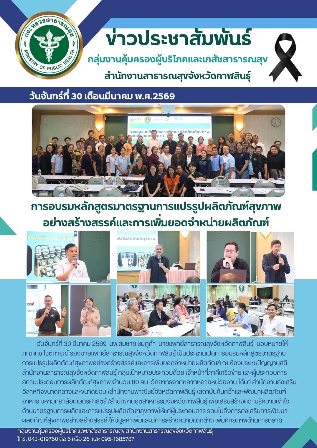 30มี.ค., 2026 อบรมหลักสูตรมาตรฐานการแปรรูปผลิตภัณฑ์สุขภาพอย่างสร้างสรรค์และการเพิ่มยอดจำหน่ายผลิตภัณฑ์