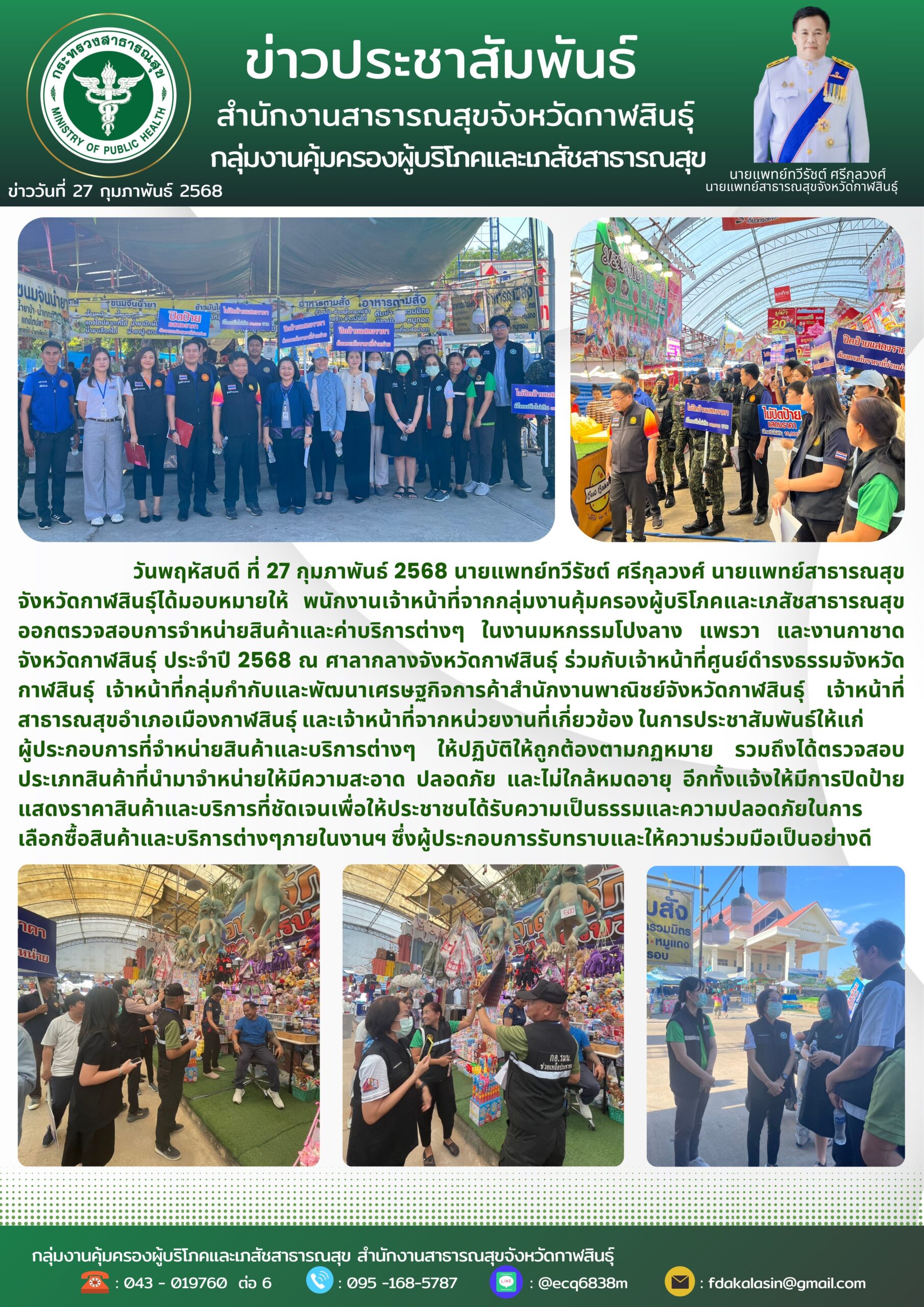 ออกตรวจสอบการจำหน่ายสินค้าและค่าบริการต่างๆ ในงานมหกรรมโปงลางแพรวา และงานกาชาดจังหวัดกาฬสินธุ์ ประจำปี 2568