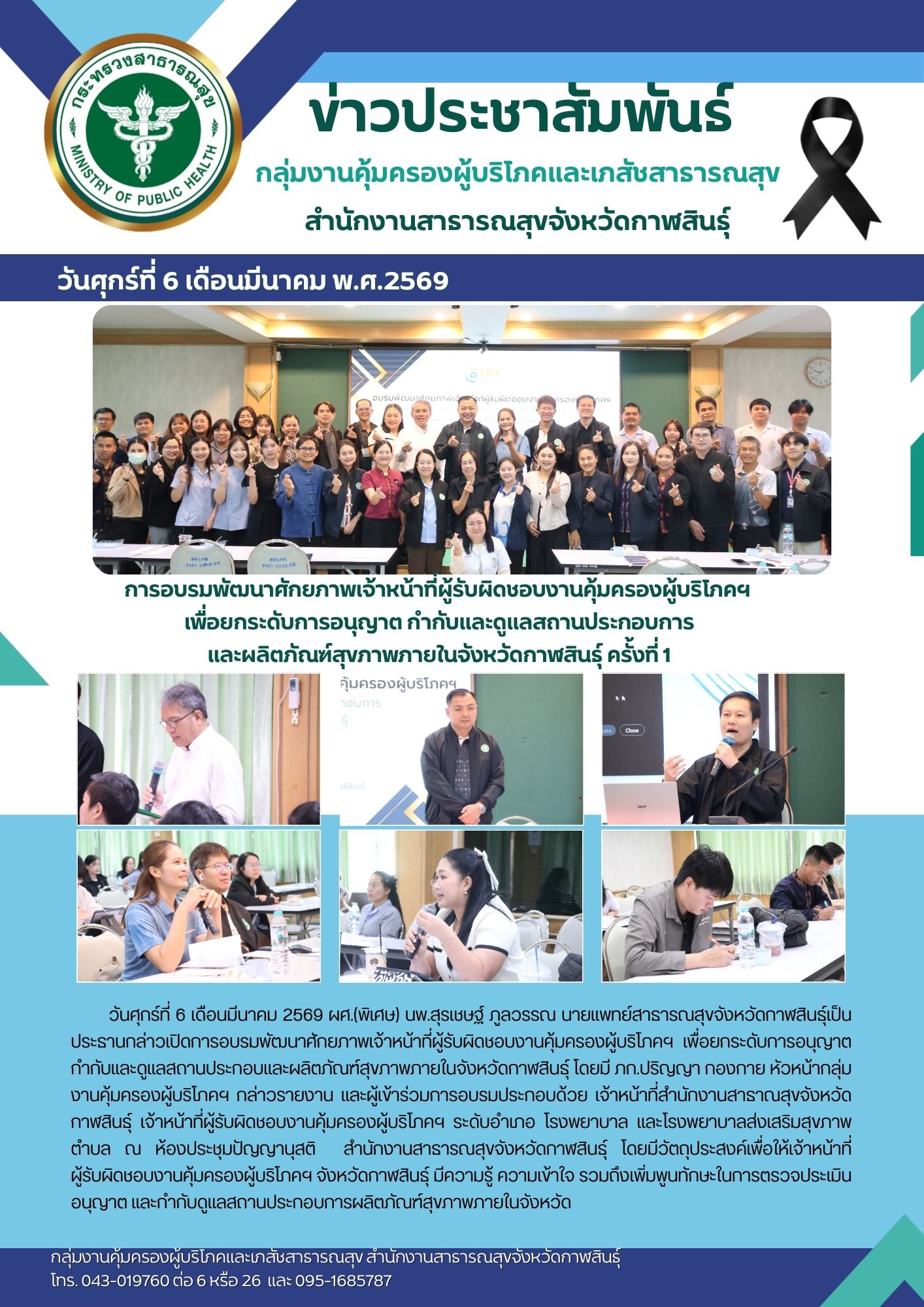กลุ่มงานคุ้มครองผู้บริโภคฯ สสจ.กาฬสินธุ์