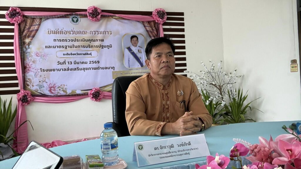 วันที่ 13 มีนาคม 2569 ดร.จักราวุฒิ วงษ์ภักดี นักวิชาการสาธารณสุขเชี่ยวชาญ (ด้านบริการวิชาการ) รองนายแพทย์สาธารณสุขจังหวัดกาฬสินธุ์ ประธานคณะกรรมการตรวจประเมินคุณภาพและมาตรฐานในการให้บริการสุขภาพปฐมภูมิ จังหวัดกาฬสินธุ์ (ค.ป.ค.ม) พร้อมด้วย นายวรชาติ จำเริญพัฒน์