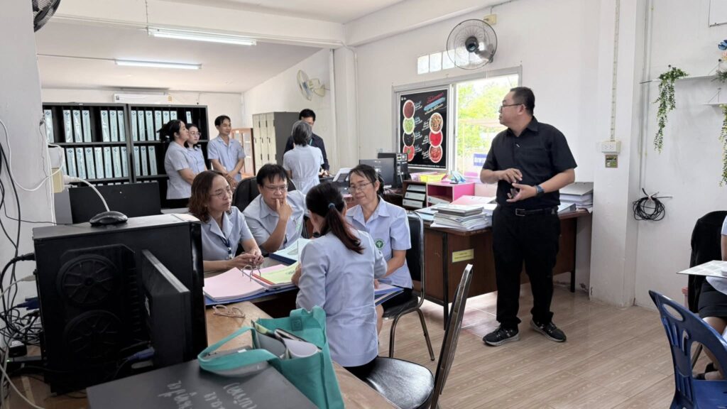 หัวหน้ากลุ่มงานปฐมภูมิและเครือข่ายสุขภาพ สำนักงานสาธารณสุขจังหวัดกาฬสินธุ์ ร่วมกับ คณะกรรมการตรวจประเมินคุณภาพและมาตรฐานในการให้บริการสุขภาพปฐมภูมิ อำเภอห้วยเม็ก นำโดย นางเบญจมาภรณ์ สิริโฉม สาธารณสุขอำเภอ