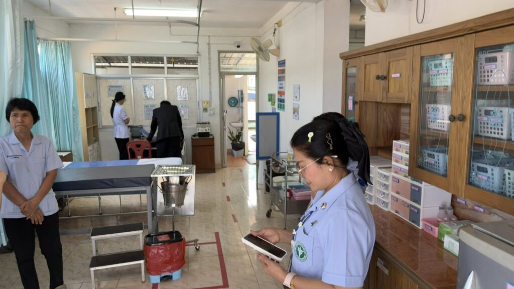 ลงพื้นที่ตรวจประเมินรับรองคุณภาพมาตรฐานในการให้บริการสุขภาพปฐมภูมิ ณ โรงพยาบาลส่งเสริมสุขภาพตำบล บ้านนาคู อำเภอนาคู จังหวัดกาฬสินธุ์ โดยมี พญ.ณัฐวดี สุภิตาภรณ์ ผู้อำนวยการโรงพยาบาลนาคู นายไกรทอง ชัยมัชชิม สาธารณสุขอำเภอนาคู นางพัชรี แสงเจริญ ผู้อำนวยการโรงพยาบาลส่งเสริมสุขภาพตำบล ร่วมต้อนรับและนำเสนอผลการดำเนินงานตามเกณฑ์มาตรฐานบริการสุขภาพปฐมภูมิ ซึ่งประกอบด้วย 8 ส่วน ได้แก่ 1.ด้านการบริหารจัดการ 2.ด้านการจัดบุคลากรและศักยภาพในการให้บริการ 3.ด้านสถานที่ตั้งหน่วยบริการ อาคาร สถานที่ และสิ่งแวดล้อม 4.ด้านระบบสารสนเทศ 5.ด้านระบบบริการสุขภาพ 6.ด้านระบบห้องปฏิบัติการด้านการแพทย์และสาธารณสุข 7.ด้านการจัดบริการเภสัชกรรมและงานคุ้มครองผู้บริโภค 8.ด้านระบบป้องกันและควบคุมการติดเชื้อ