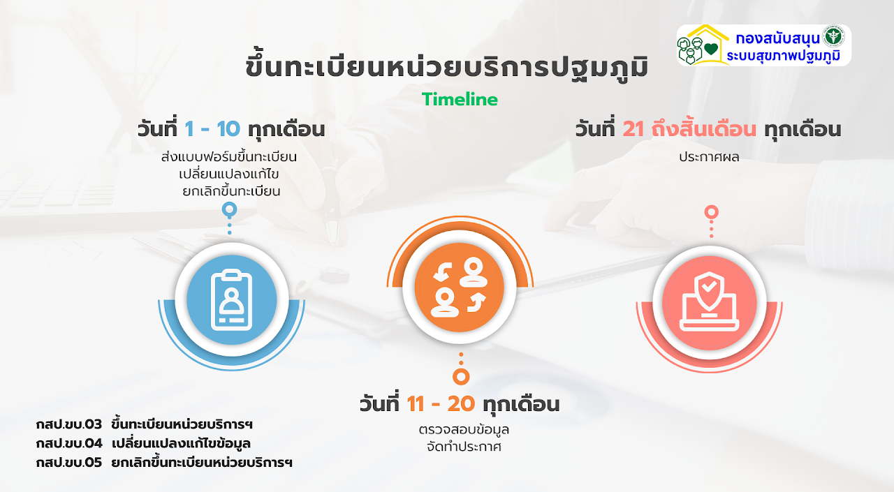 Time line การขึ้นทะเบียน PCU & NPCU